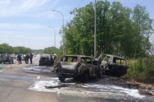 Все три автомобиля после столкновения сгорели.