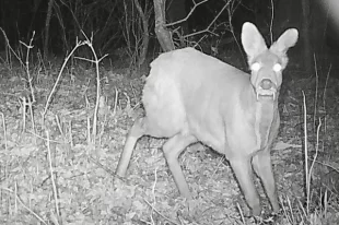 Фотоловушка запечатлела самца кабарги во время прогулки