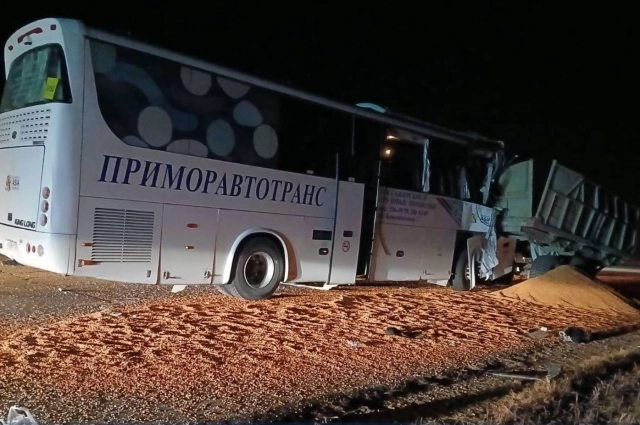Серьезное дорожно-транспортное происшествие с участием международного автобуса и большегруза произошло минувшей ночью 28 октября на автодороге «Уссурийск — Пограничный — Госграница». Автобус, перевозивший китайских туристов, на полном ходу врезался в прицеп зерновоза, стоявший на проезжей части. В результате ЧП пострадали восемь человек, возбуждено административное дело.