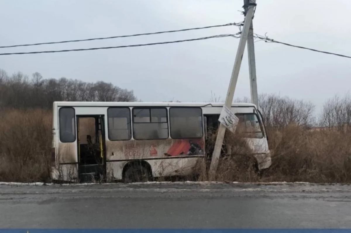 Пассажирский автобус съехал в кювет и столкнулся со столбом