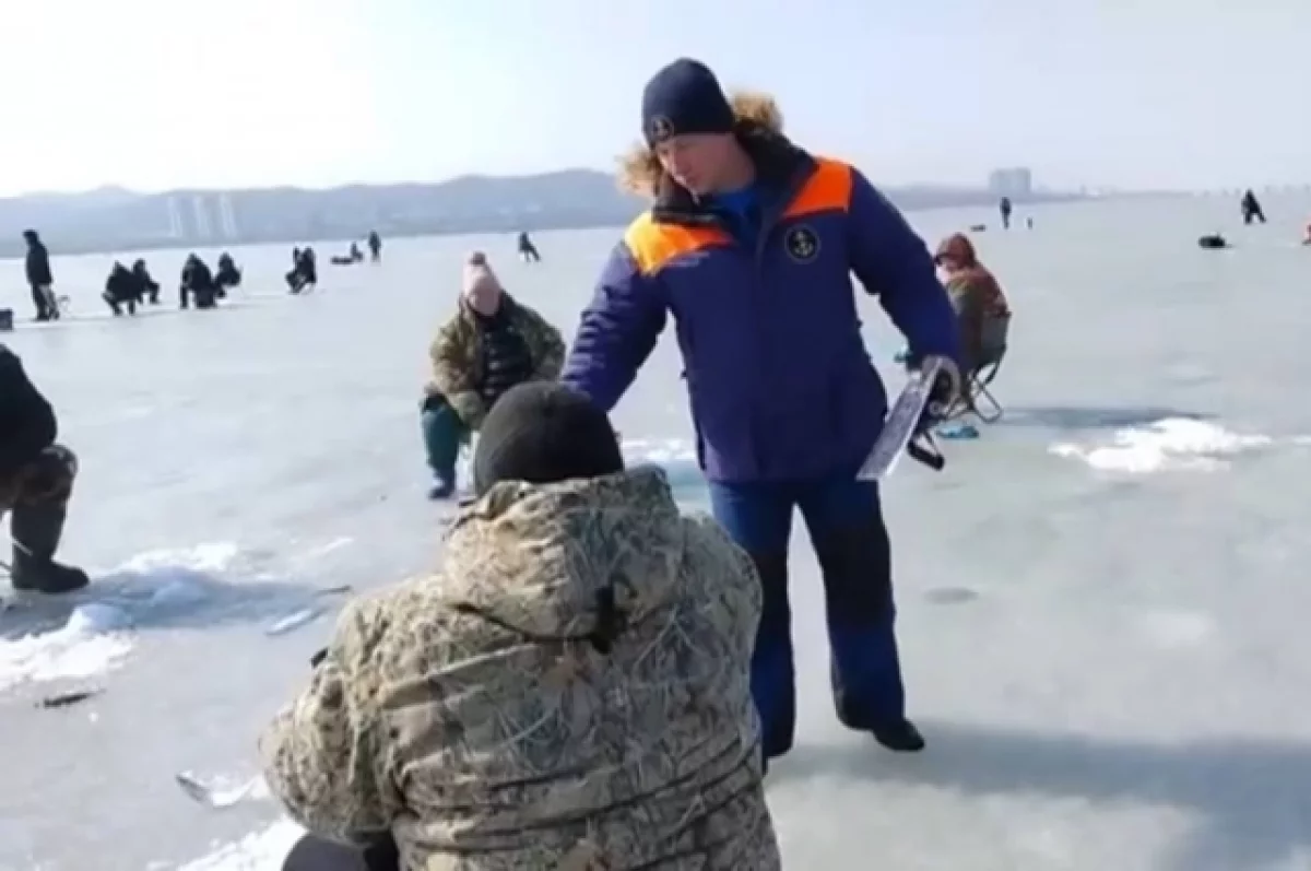 Несмотря на плюсовую температуру до +8 градусов и официальный запрет выхода на лёд, в субботу, 21 марта, на льду Амурского залива находились около 500 рыбаков. Инспекторы ГИМС МЧС провели профилактический рейд, напомнив любителям подлёдного лова о смертельной опасности весеннего льда.