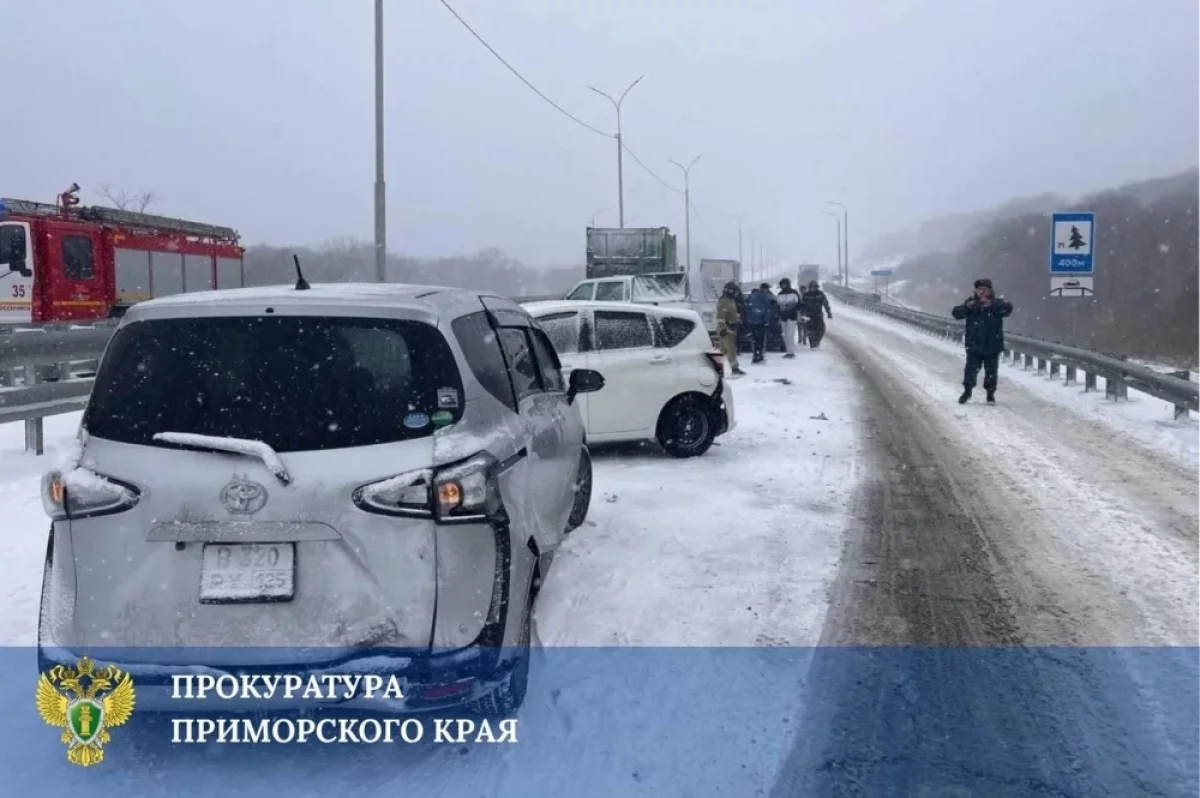 Прокуратура Приморского края поставила на контроль установление обстоятельств массового ДТП в Уссурийске. В надзорном ведомстве сообщили, что днем 20 марта 2026 года на 679‑м километре автомобильной дороги Хабаровск — Владивосток произошло дорожно‑транспортное происшествие с участием 14 автомобилей.