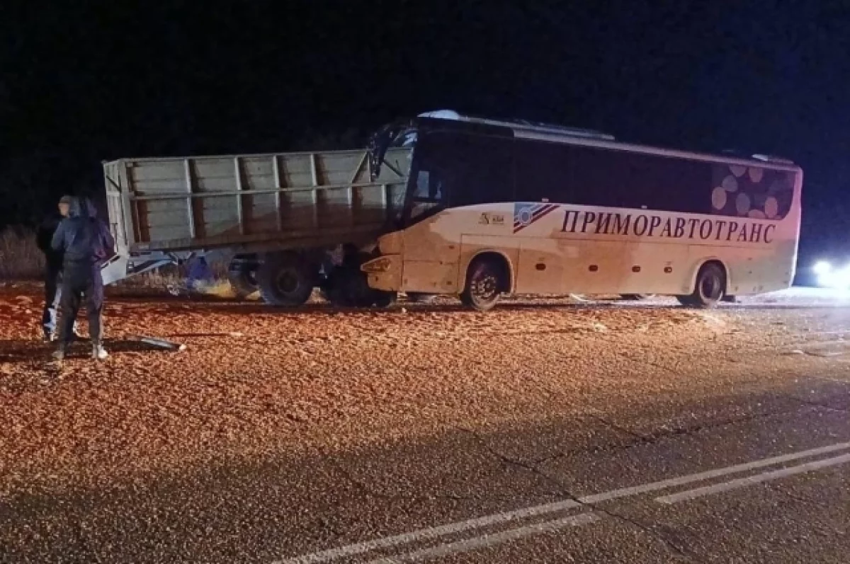 Прокуратура Приморского края сообщила, что вечером понедельника, 27 октября, на 23‑м километре автотрассы «Уссурийск — Пограничный» произошла авария с участием пассажирского автобуса и грузового автомобиля.