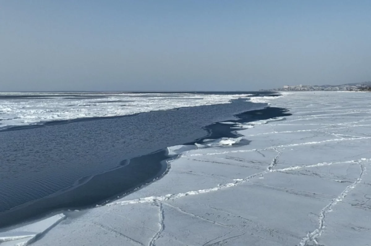 Потепление до плюс шести градусов в конце прошлой недели и южный ветер остановили образование льда в заливе Петра Великого и разрушили кромку тонкого припайного льда в южной части Амурского залива.